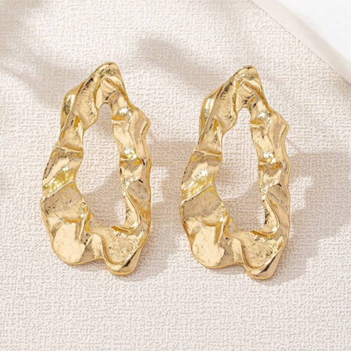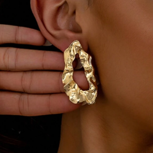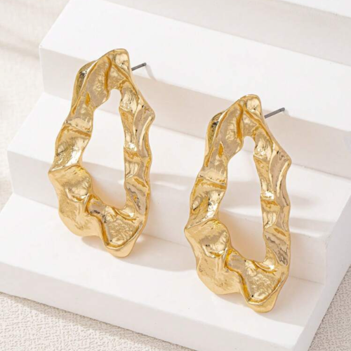 Turn heads with these bold, sculpted beauties. Designed with an artistic, free-form silhouette, these earrings bring a luxe, modern edge to any look. Their molten-metal texture and open abstract shape make them the perfect accessory for fashion lovers who crave something different.
