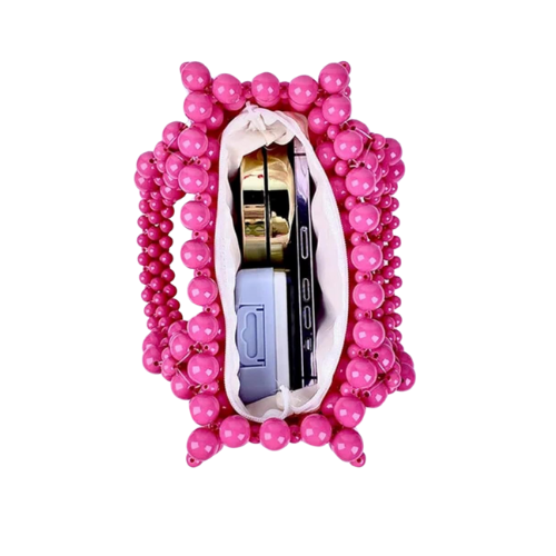 Bright, bold, and impossible to miss — this hot pink beaded handbag is your new go-to statement piece. This handmade fully beaded design creates a standout texture while the structured silhouette keeps it chic and polished. Carry it for brunch dates, nights out, or any moment that calls for a little extra glam.