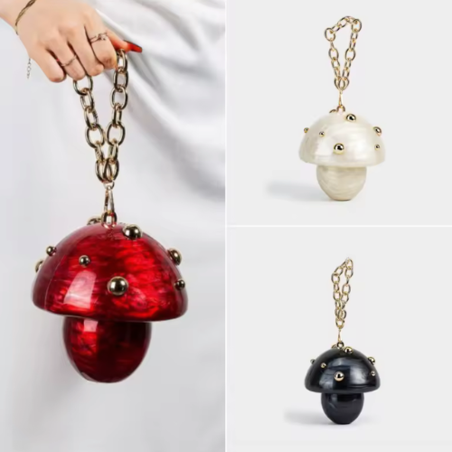 Make a bold, whimsical statement with our Mushroom Luxe Statement Bag — a true show-stopper crafted for fashion lovers who aren’t afraid to stand out. Designed in a rich, marbled red finish and accented with gleaming gold studs, this sculptural bag transforms a playful silhouette into a high-fashion accessory.